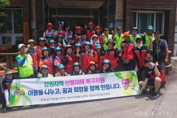 박성순 충청남도자원봉사센터장은 “우리의 작은 노력이 피해 주민들의 상처를 치유하는데 보탬이 되길 바라며, 산불 피해 지역의 조속한 복구를 기원 드린다.”고 전했다.